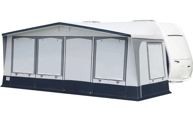 Für das Brand Tarifa Ganzjahresvorzelt wird für das Dach und die Seitenwände ein robustes Polychlorid-Material verwendet. Die Vorderwand des Tarifa wird aus atmungsaktivem TenCate – Gewebe gefertigt. Dieses Brand Vorzelt ist eine interessante Alternative für Saison- und Dauercamping. Die Elemente der Vorderwand sind individuell tauschbar (Tür kann an 4 Positionen sein). Alle Fenster mit Fensterklappen. Die Lüftungsgaze der Seitenfenster sind mit zusätzlichen Regenschutzfolien ausgestattet.
