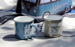 VW Collection T1 Bus Emaille Tassen Set 2 Stück 350 Ml Grün / Rosa
