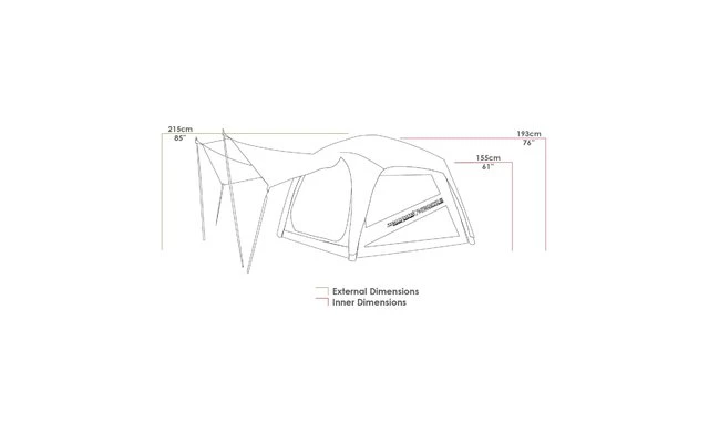 Dank des aufblasbaren Gestänges lässt sich das Zelt in wenigen Minuten aufbauen, die mitgelieferten Stirnstangen maximieren das Innenvolumen. Das Innendach besteht komplett aus Mesh, wodurch die warme Luft entweichen kann und die Kondensation minimiert wird. Je nach Wetterlage können Sie das Außenzelt abnehmen, die seitlichen Innenfenster mit einem Reißverschluss verschließen und den Blick auf den Sternenhimmel genießen.